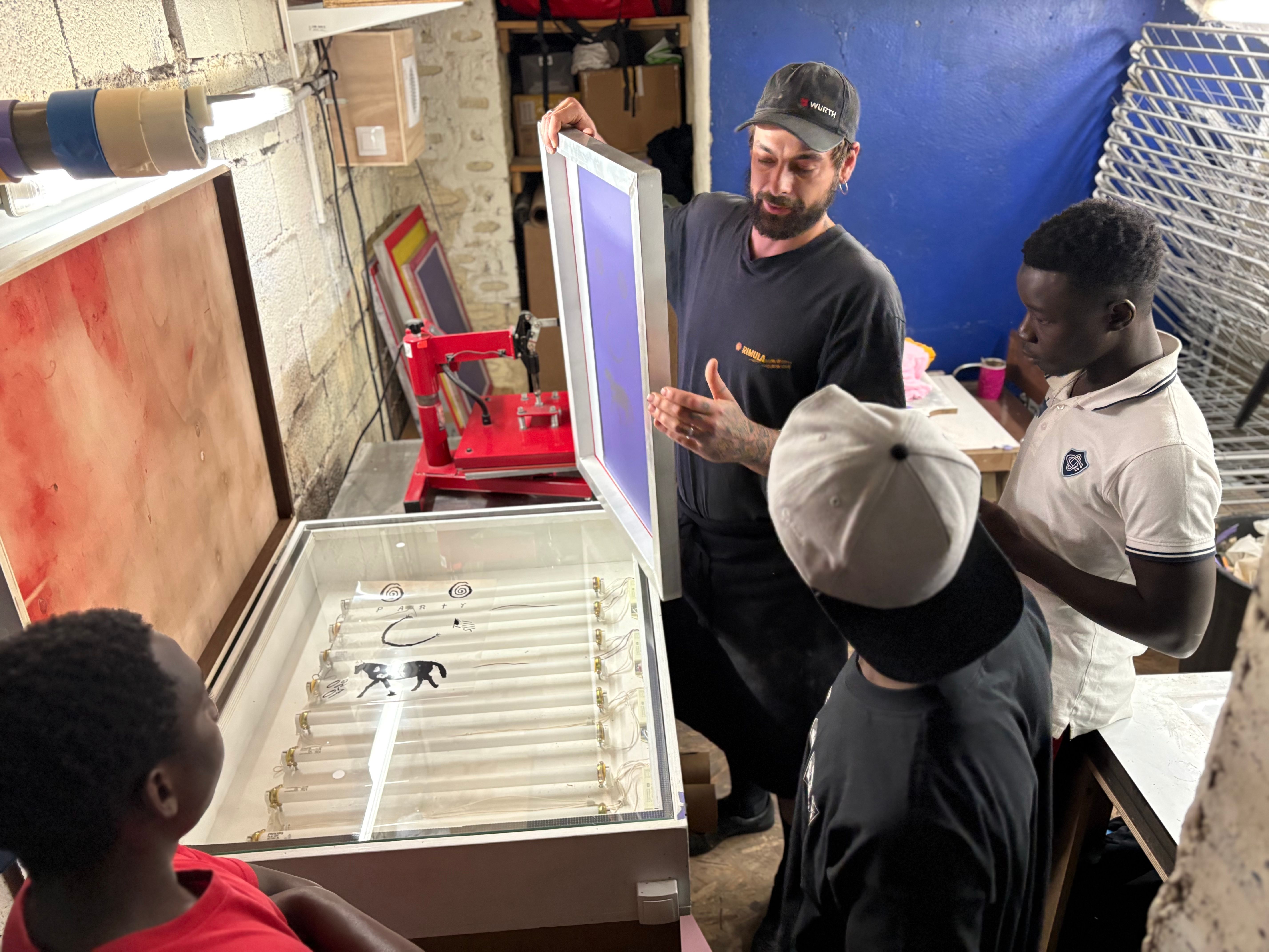 En plus d'avoir pu sérigraphier l'affiche sur papier, ils ont pris les devants en réalisant eux meme de la sérigraphie sur t-shirt à partir des éléments visuel de l'affiche