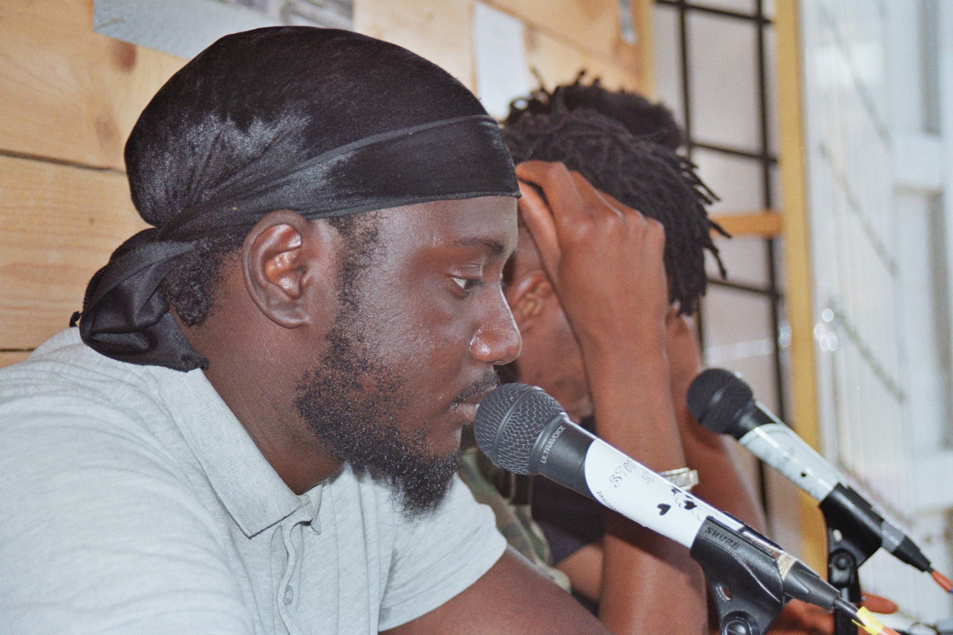 Après quelques échanges, place aux impros derrière le micro pour les jeunes. Les instrumentaux de Dr Dre, Cypress Hill se mèlent aux compos originales de certains ou à certains glanés sur Internet.
