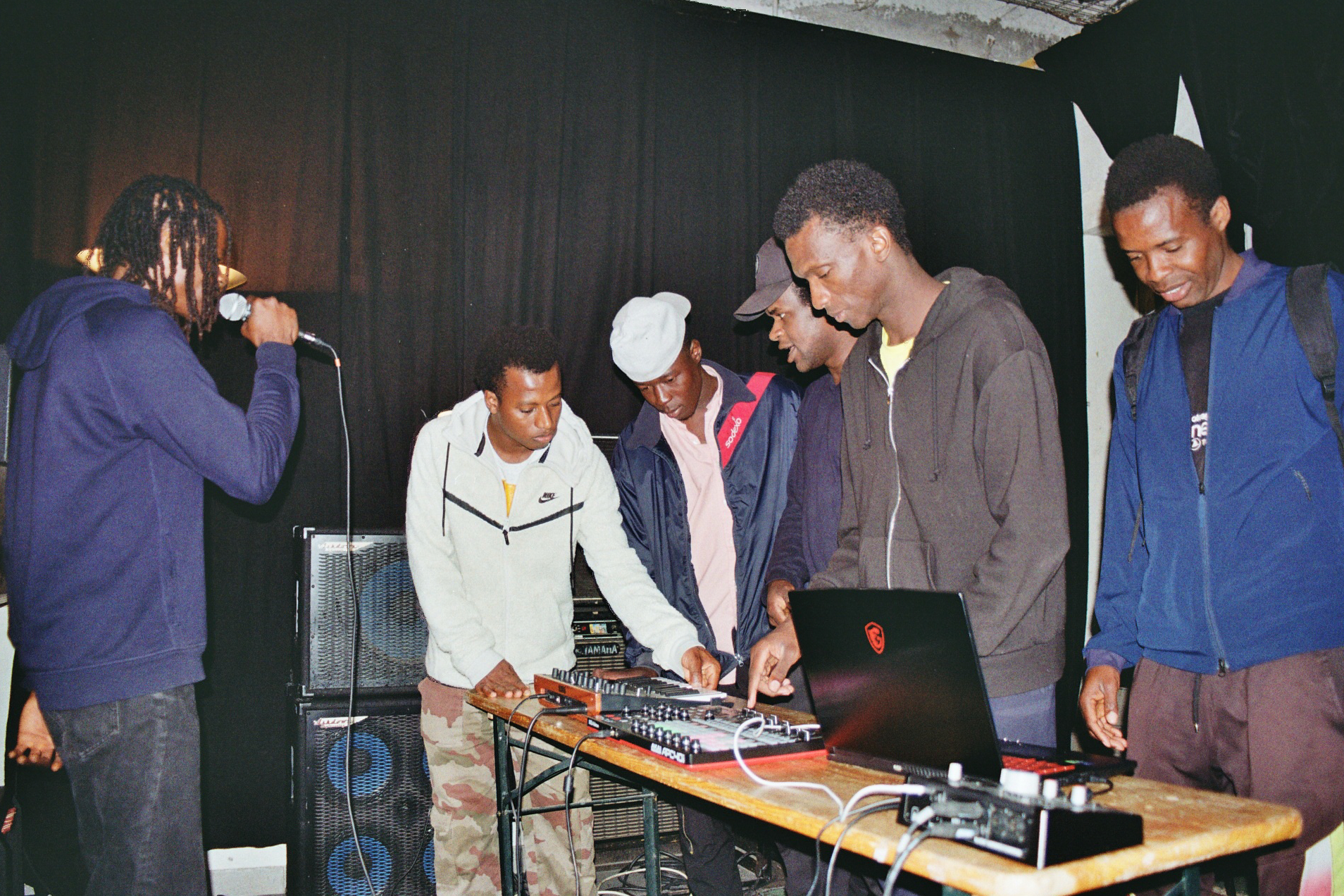 Apres l'aventure de la sérigraphie, place à la préparation du concert. Organisé sur plusieurs séances, l'objectif était dans un premier temps de faire des improvisations et de travailler des nouveaux instrus au studio de la radio. Dans un second temps, une formation aux metiers du son et de la lumière en compagnie de Dom Tom, ingénieur lumière, et Victor Maquet, ingénieur du son, a permis au plus grand nombre de pouvoir s'impliquer dans le processus de création et se former a ces différents metiers.