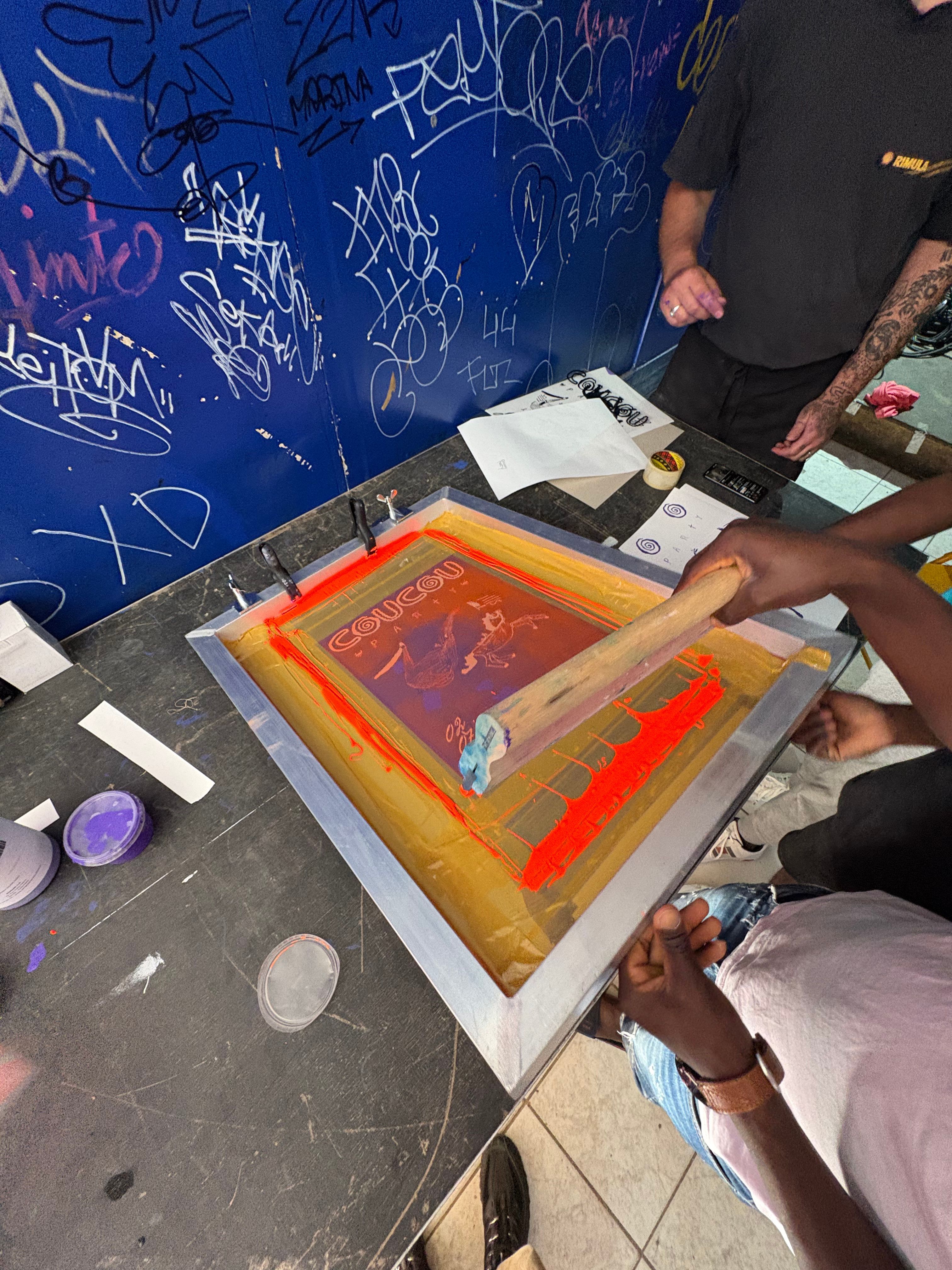 En plus d'avoir pu sérigraphier l'affiche sur papier, ils ont pris les devants en réalisant eux meme de la sérigraphie sur t-shirt à partir des éléments visuel de l'affiche