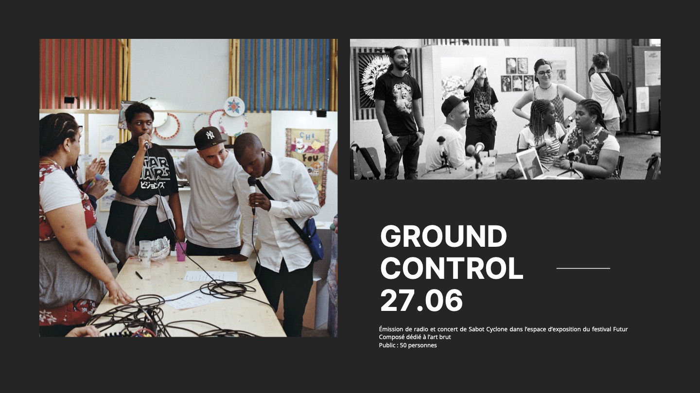 _ Vendredi 27 juin 2025 à Ground Control à Paris 12e, émission de radio et concert de Sabot Cyclone dans l’espace d’exposition du festival Futur Composé dédié à l’art brut